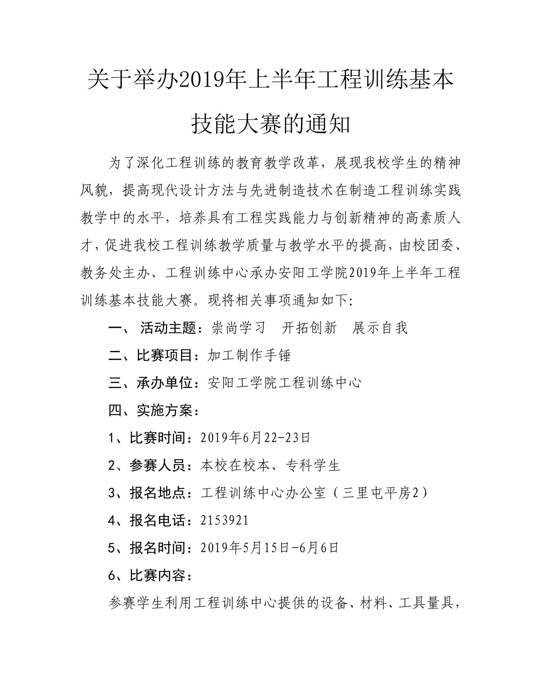 关于举办2019年上半年工程训练基本技能大赛的通知